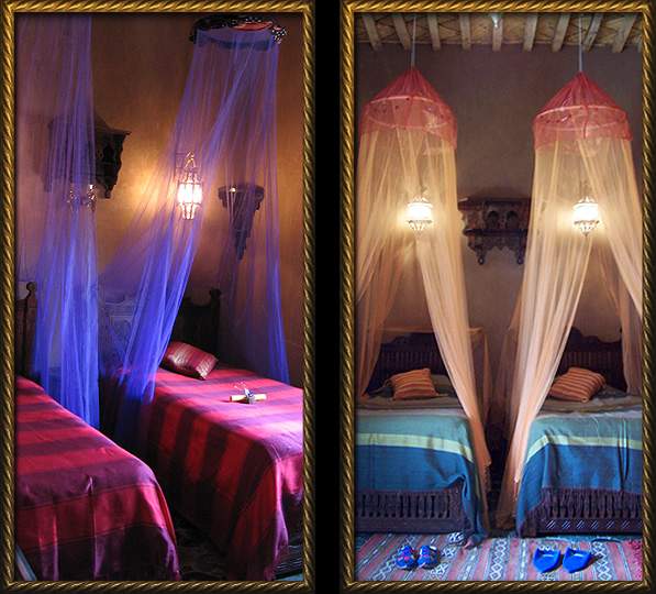 Das Gästehaus "Le Sauvage Noble" hat sieben Zimmer mit französischem Bett und neun Zimmer mit zwei Einzelbetten, jedes hat ein eigenes Bad (Liste aller Zimmer). Handgeschnitzte Betten, detailreich bemalte Schränke und Regale, Lampen in tausend und einer Form sowie reich gemusterte Teppiche verleihen den Räumen ihren unverwechselbaren Charakter. Wie die Einfachheit des Materials durch die Kunst der Verarbeitung geadelt wird - dafür soll "Le Sauvage Noble" ein Beispiel sein.