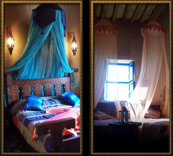 Das Gästehaus "Le Sauvage Noble" hat sieben Zimmer mit französischem Bett und neun Zimmer mit zwei Einzelbetten, jedes hat ein eigenes Bad (Liste aller Zimmer). Handgeschnitzte Betten, detailreich bemalte Schränke und Regale, Lampen in tausend und einer Form sowie reich gemusterte Teppiche verleihen den Räumen ihren unverwechselbaren Charakter. Wie die Einfachheit des Materials durch die Kunst der Verarbeitung geadelt wird - dafür soll "Le Sauvage Noble" ein Beispiel sein.